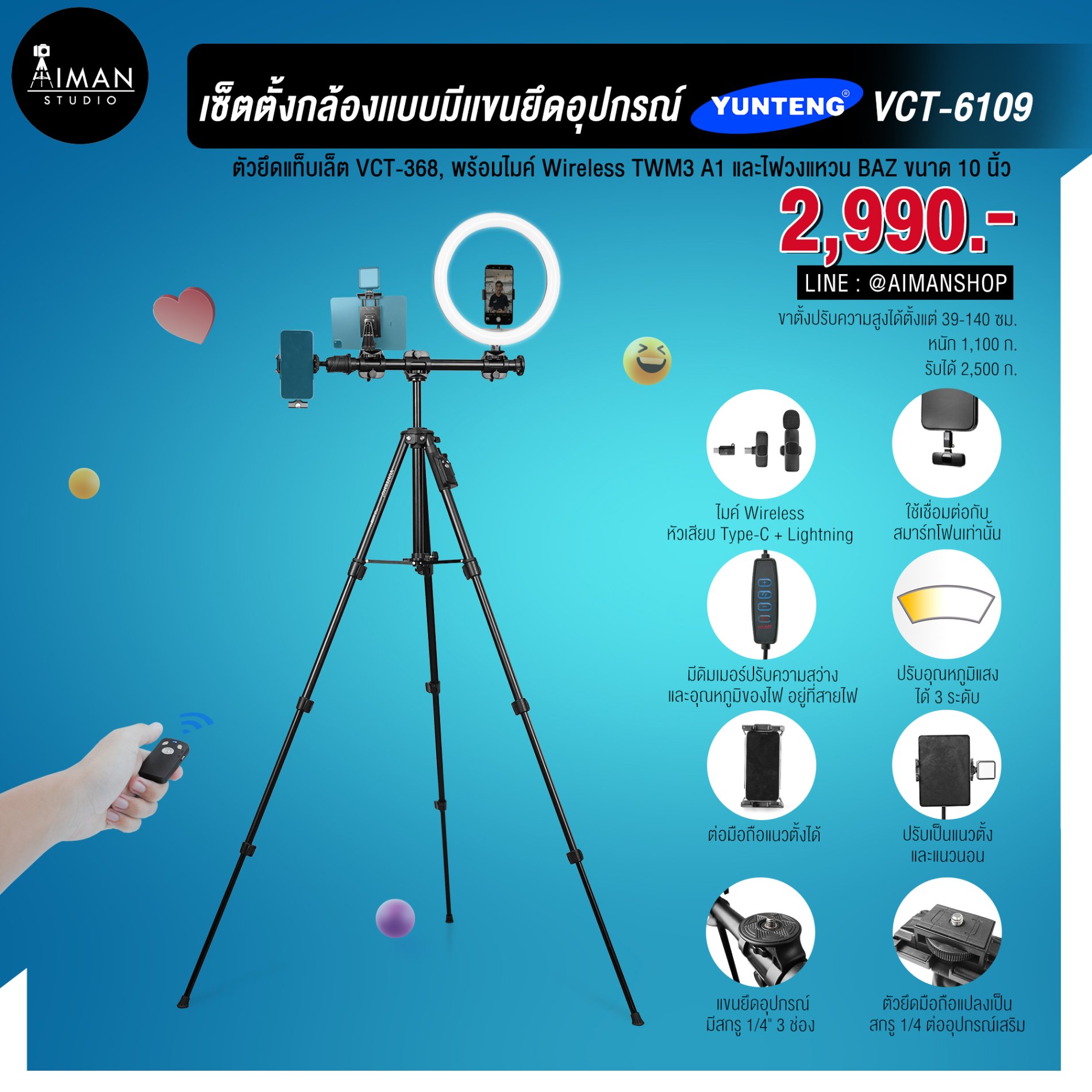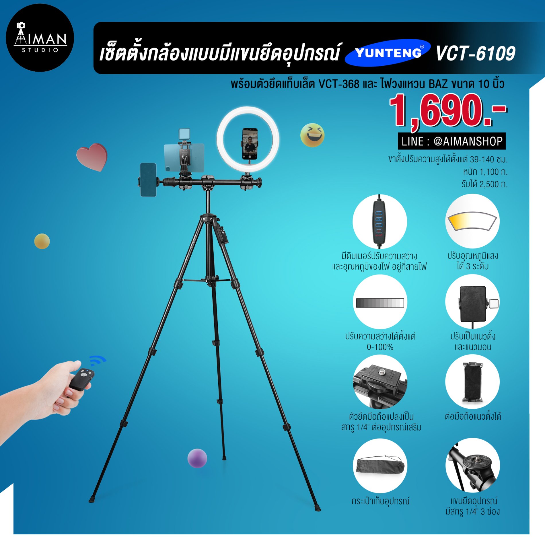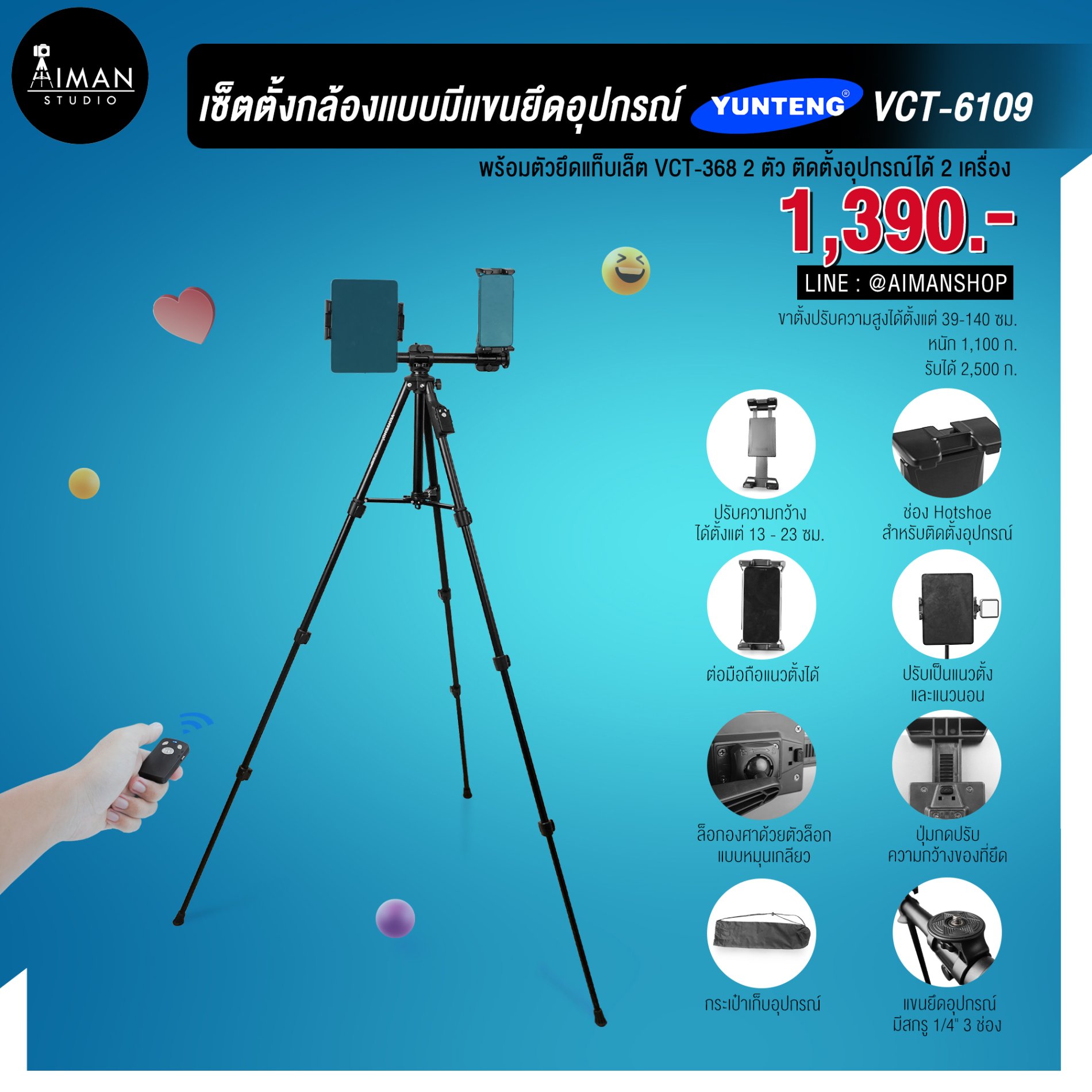 ⭐️ ขาตั้งกล้อง YUNTENG VCT-6109 พร้อมแขนยึดอุปกรณ์และตัวยึดมือถือแบบหัวบอล