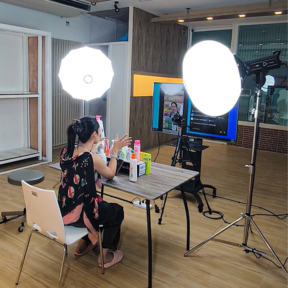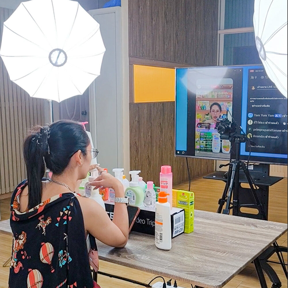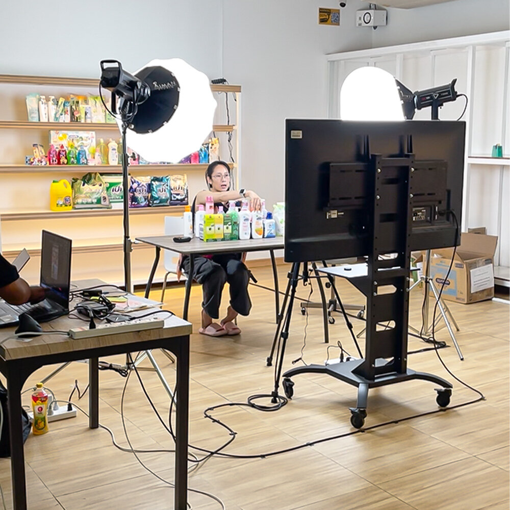 ในครั้งนี้ Aiman Studio ได้จัดชุดอุปกรณ์สำหรับการไลฟ์สดพร้อมกัน 2 ช่องทาง ได้แก่ Shopee และ TikTok พร้อมกันในครั้งเดียว