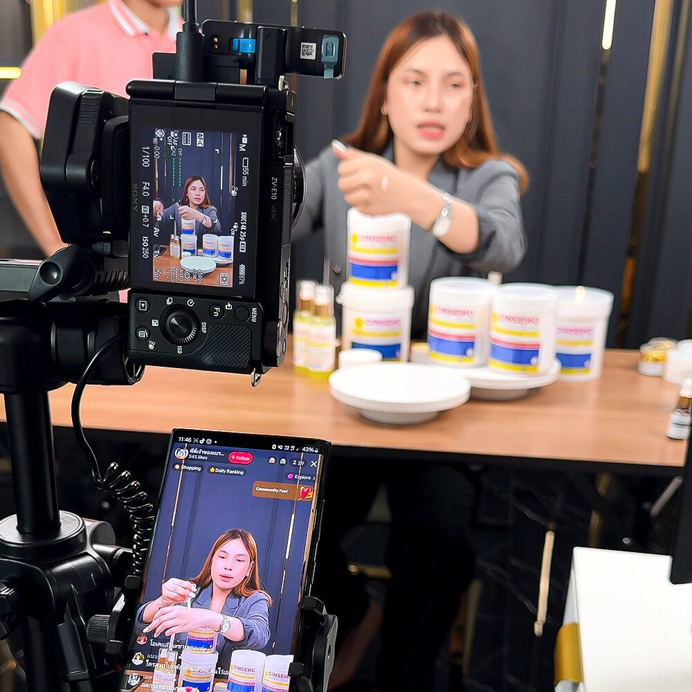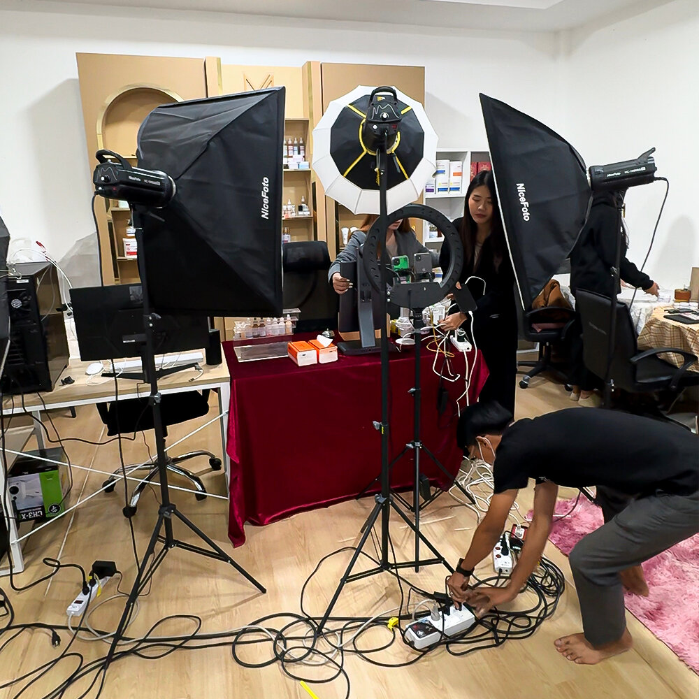 Aiman Studio ออกแบบและติดตั้งระบบไลฟ์สดครบวงจรให้กับธุรกิจผลิตแบรนด์และขายเครื่องสำอางในจังหวัดสระแก้ว เพื่อให้การไลฟ์ขายสินค้าและพรีเซนต์ผลิตภัณฑ์ดูมืออาชีพมากขึ้น ภาพคมชัด สีผิวสวย และเน้นให้เห็นเนื้อผลิตภัณฑ์จริงชัดเจน
