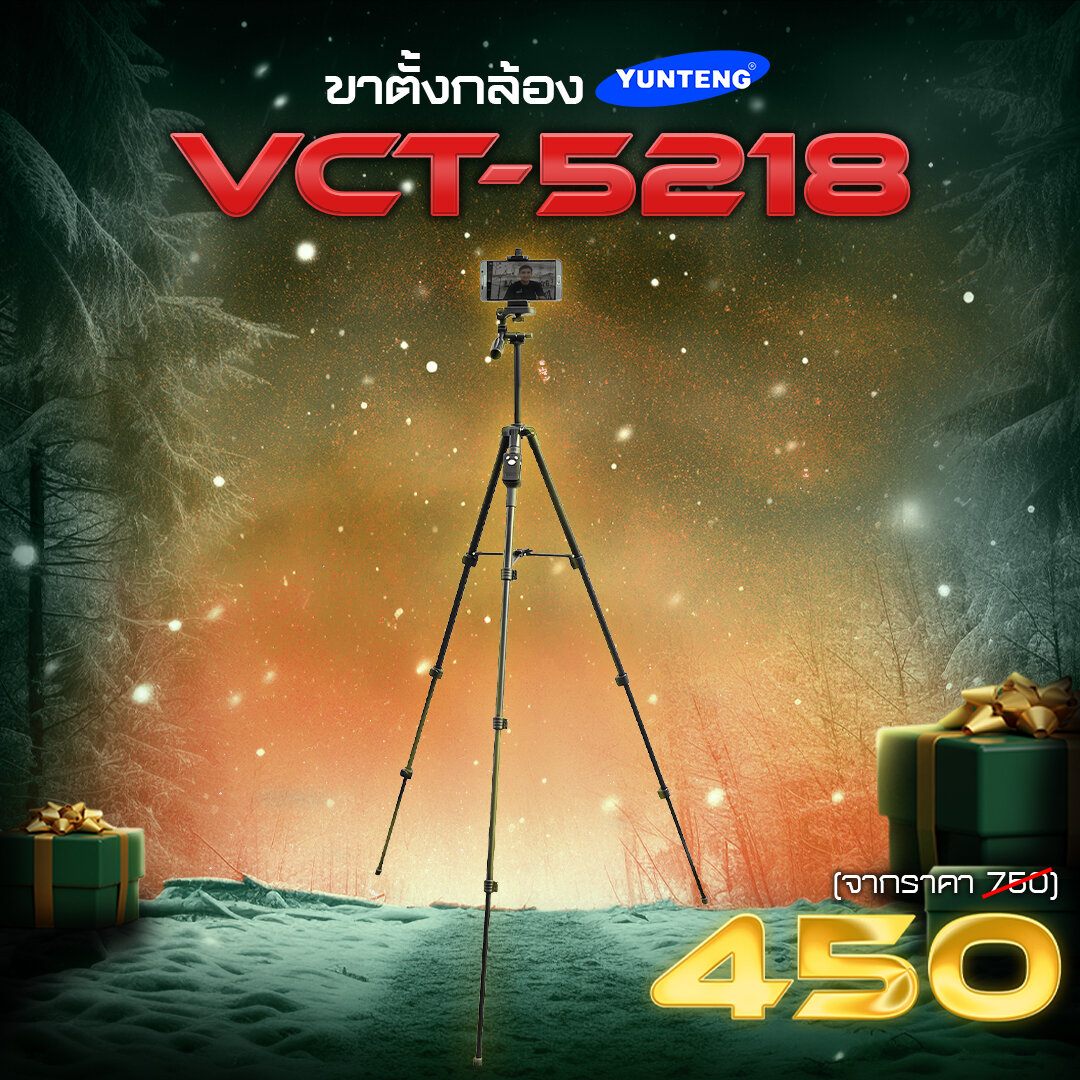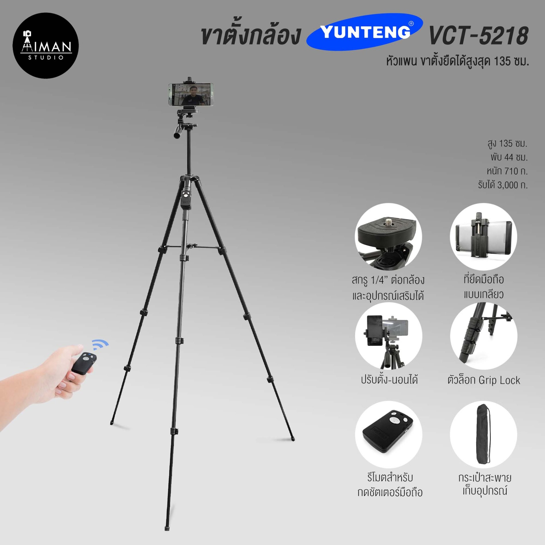 ขาตั้งกล้อง YUNTENG VCT-5218 หัวแพน ขาตั้งยืดได้สูงสุด 135 ซม.