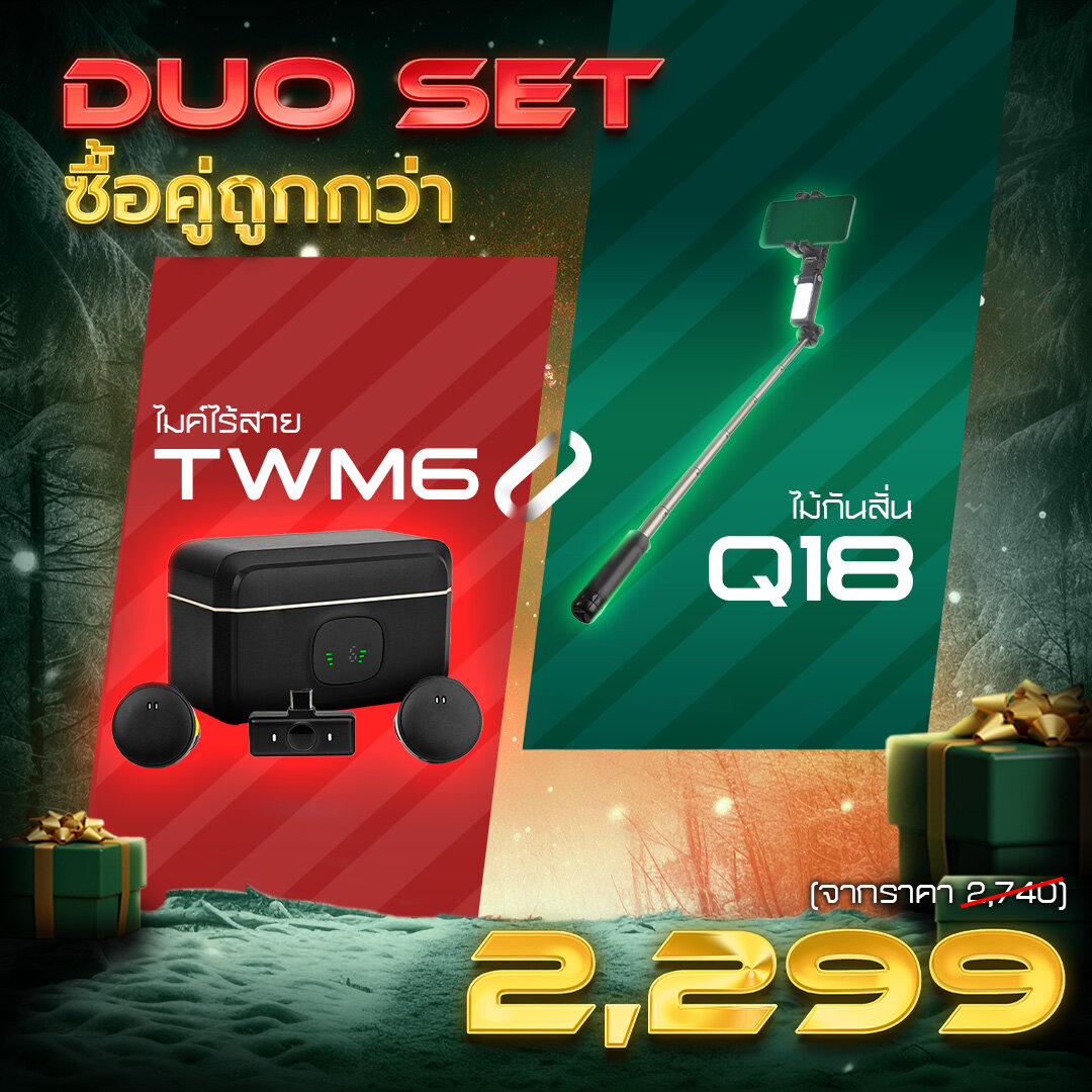 ไมค์ไร้สาย TWM6 + ไม้กันสั่นไฟฟ้าแบบมีไฟ Q18