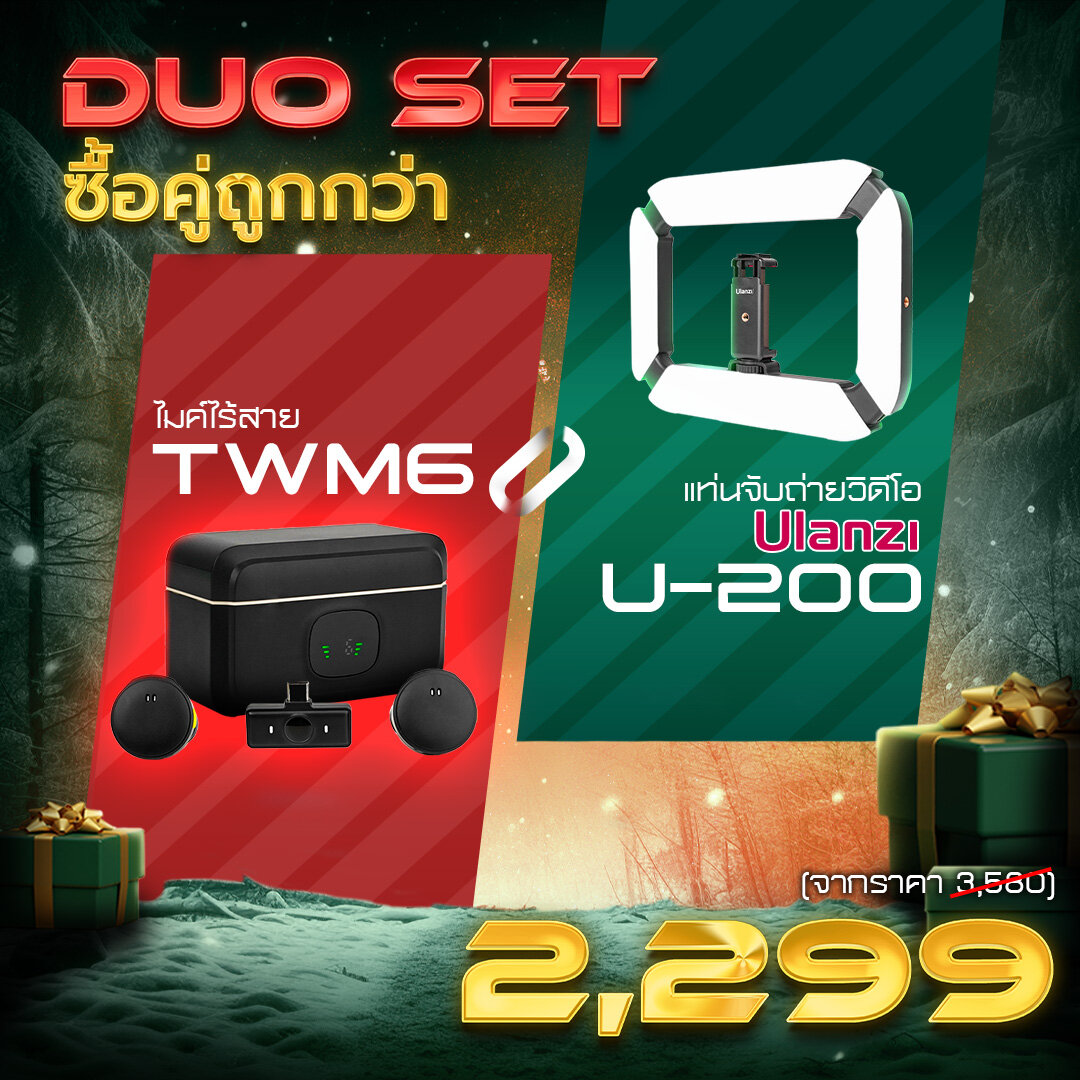 ไมค์ไร้สาย TWM6 + แท่นจับถ่ายวิดีโอ ULANZI U200 อุปกรณ์ถือถ่ายพร้อมไฟในตัว