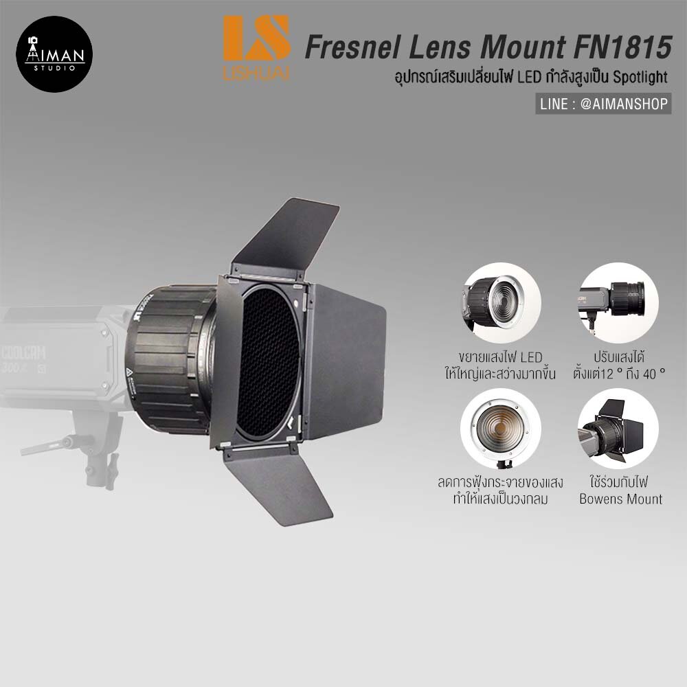 • มาพร้อม Barn Door ช่วยปรับทิศทางแสง และ ติดเจลสีได้