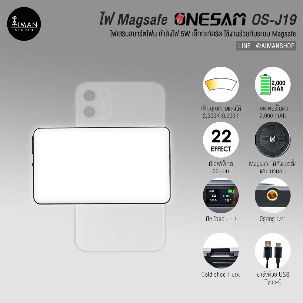 ไฟเสริมสมาร์ตโฟน กำลังไฟ 5W เล็กกะทัดรัด ใช้งานร่วมกับระบบ Magsafe