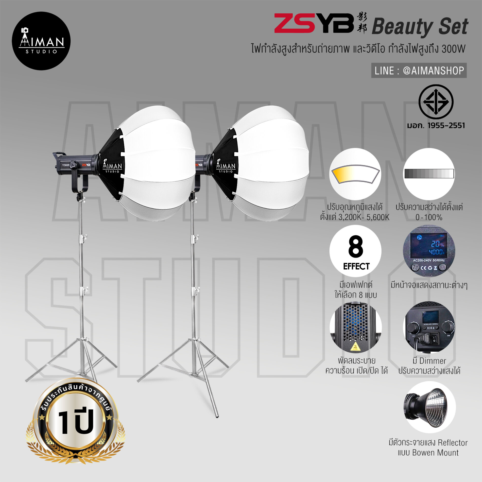 • สามารถเชื่อมต่ออุปกรณ์เสริม (Light Modifier) แบบ Bowen Mount ได้