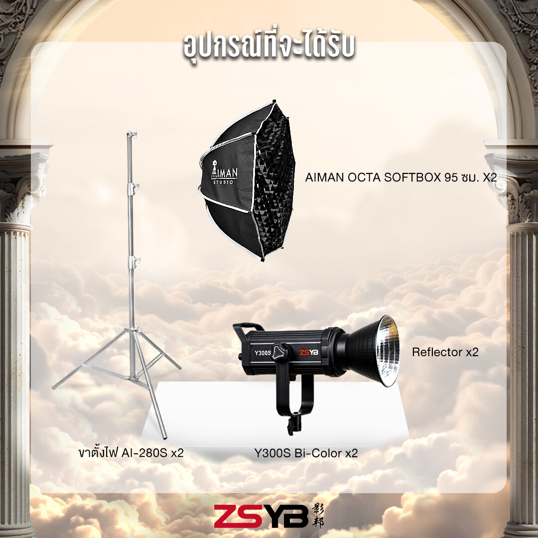 • Softbox ทรง 8 เหลี่ยม ช่วยกระจายแสงให้กว้าง