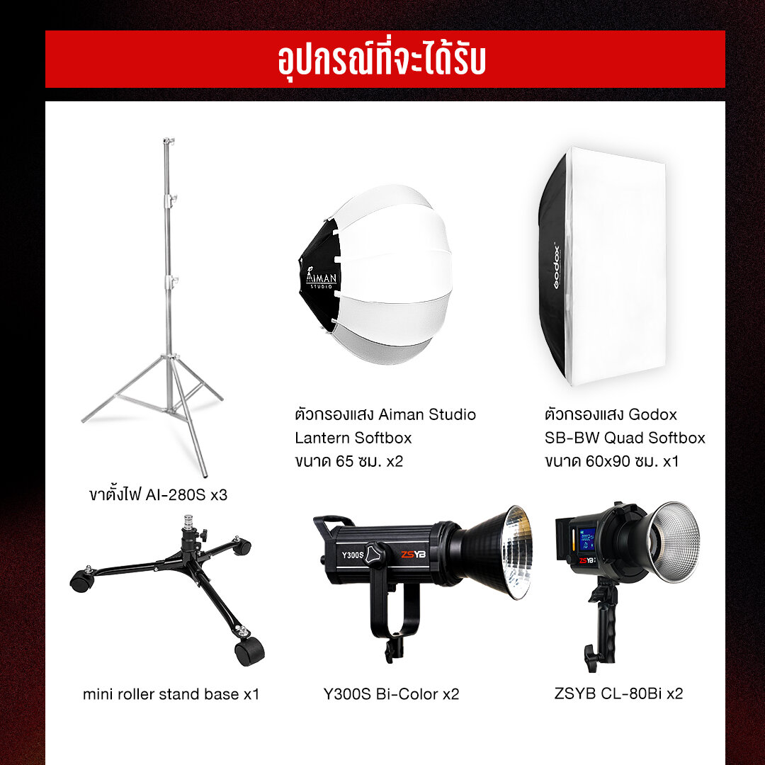 • มี Softbox FW Quad 22×90 ซม. เพื่อกระจายแสง