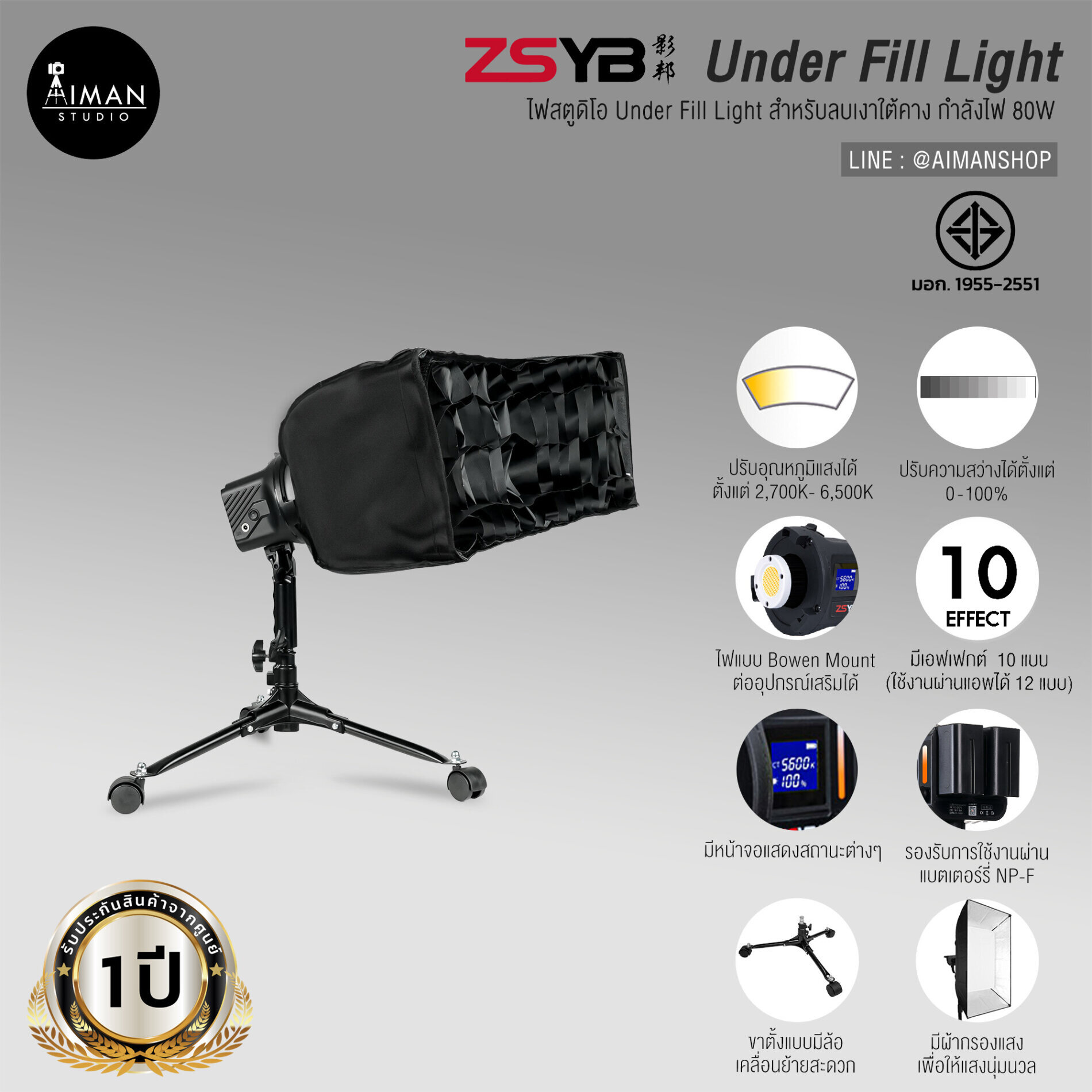 • เป็นไฟแบบ Bi-Color ปรับอุณหภูมิแสงได้ตั้งแต่ 3,200K – 5,600K
