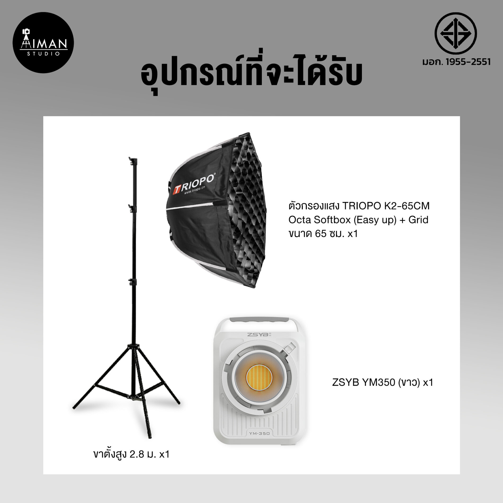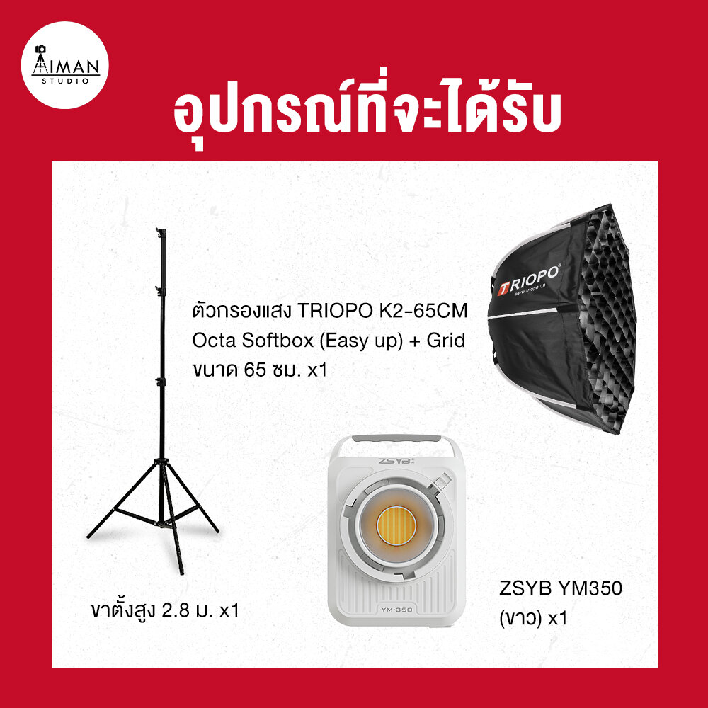 • Softbox ทรง 8 เหลี่ยม ช่วยกระจายแสงให้กว้าง