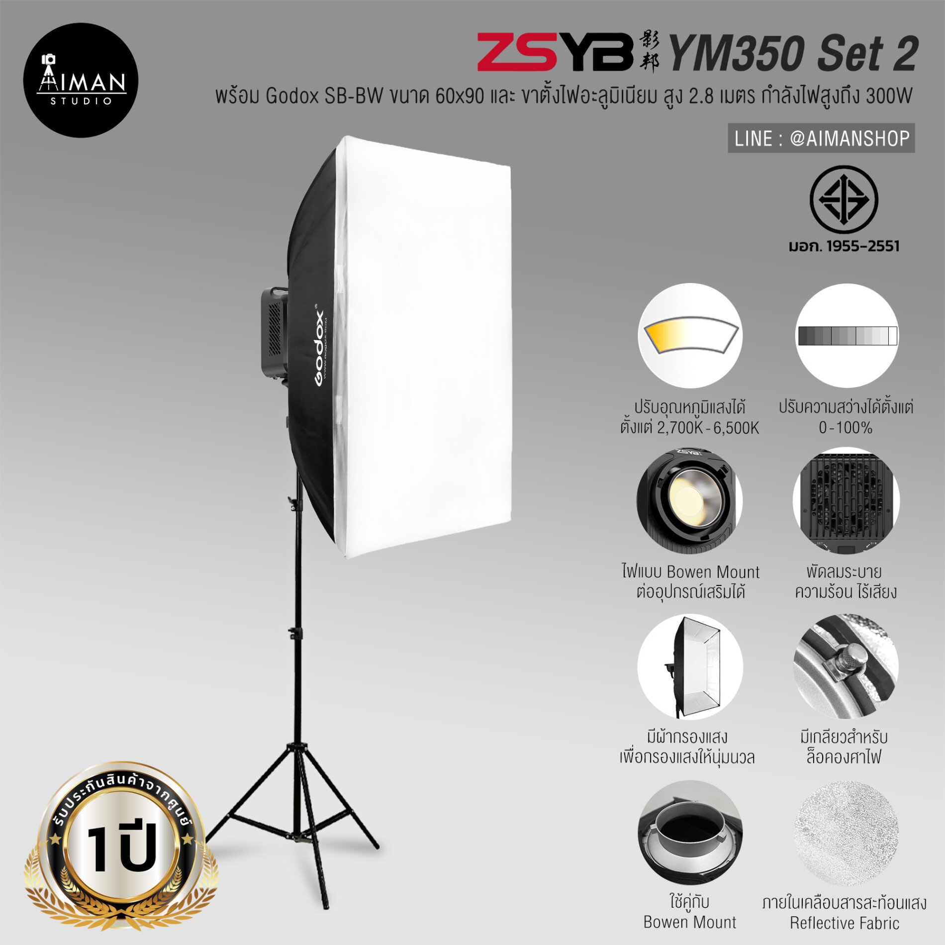 • สามารถเชื่อมต่ออุปกรณ์เสริม (Light Modifier) แบบ Bowen Mount ได้