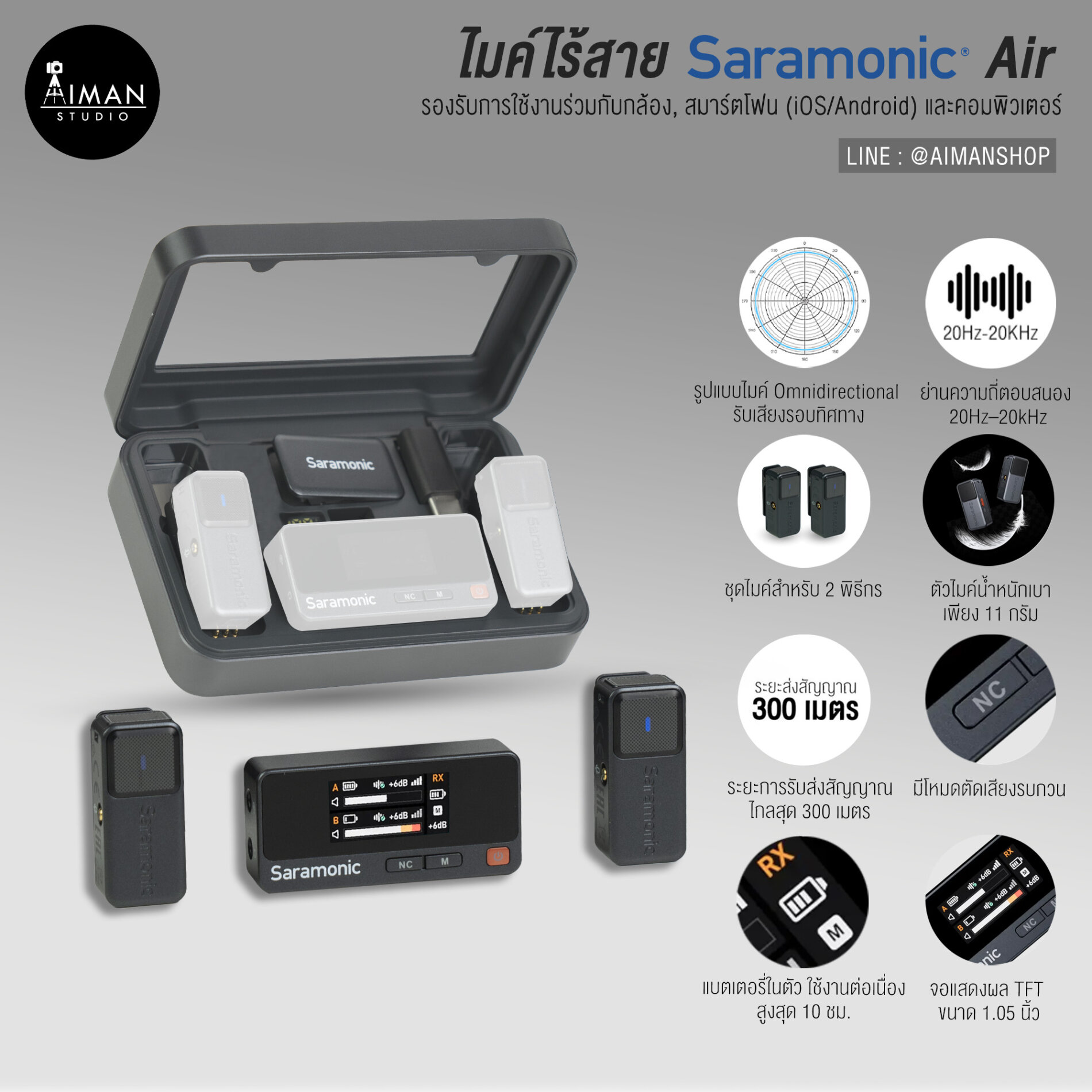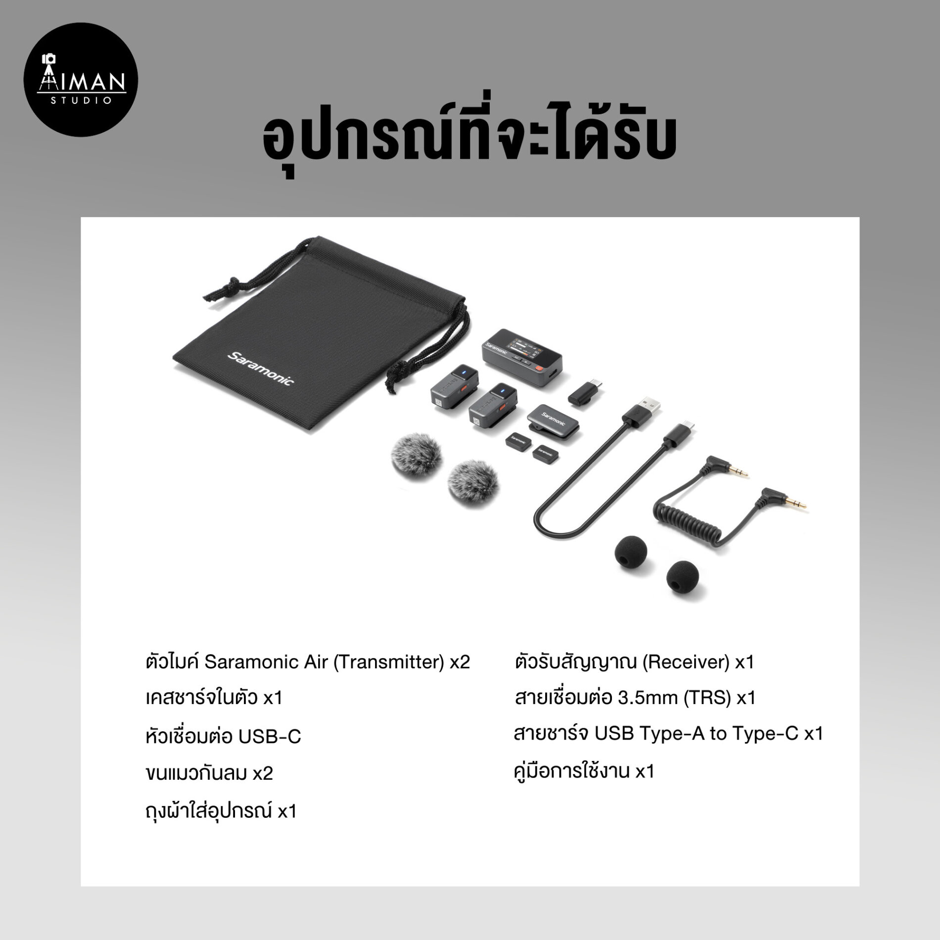 • ตัวไมค์ Saramonic Air (Transmitter) x2