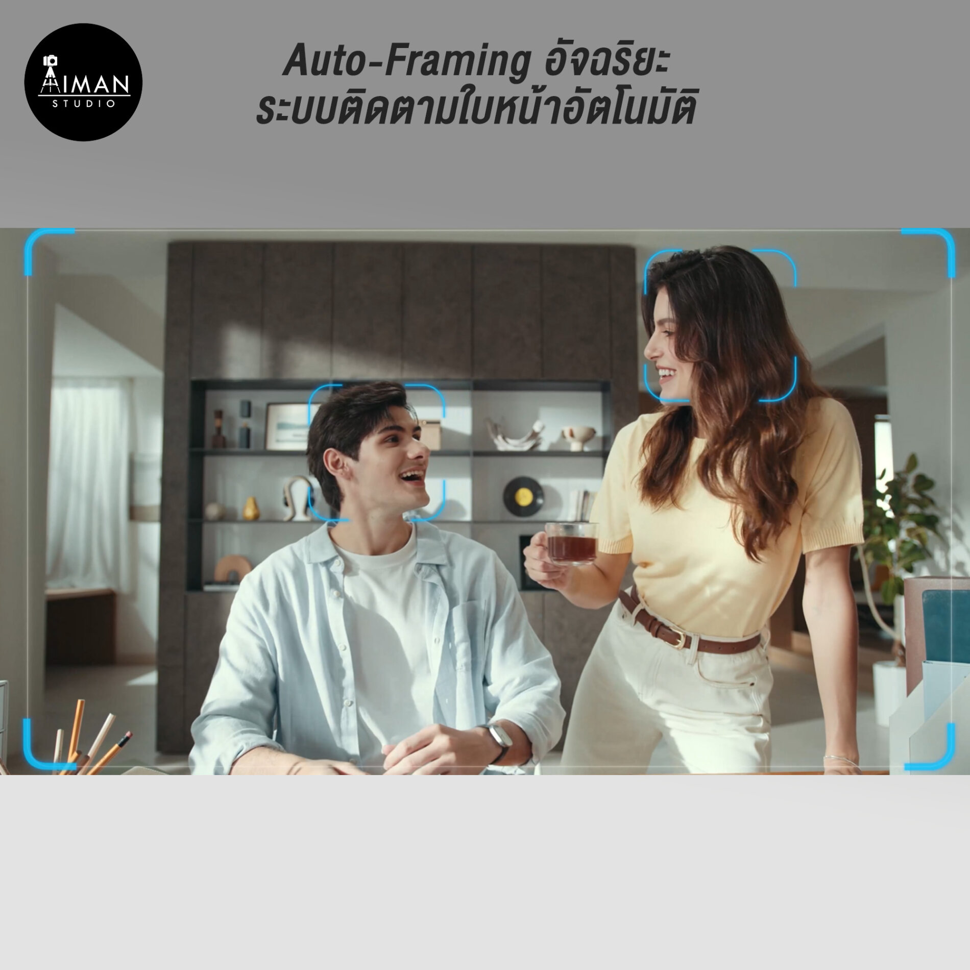 • ฟังก์ชั่น Auto-Framing อัจฉริยะ (ระบบติดตามใบหน้าอัตโนมัติ ปรับเฟรมให้สมดุลตลอดเวลา)
