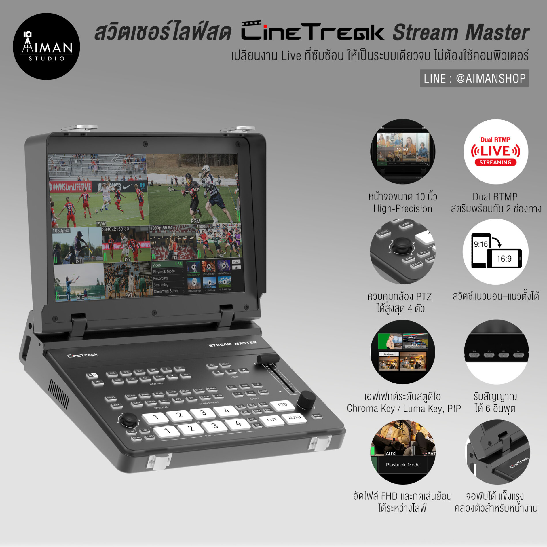 มีทุกอย่างในเครื่องเดียว ตั้งแต่สลับกล้อง ไปจนถึงสตรีมไปหลายแพลตฟอร์มพร้อมกัน”