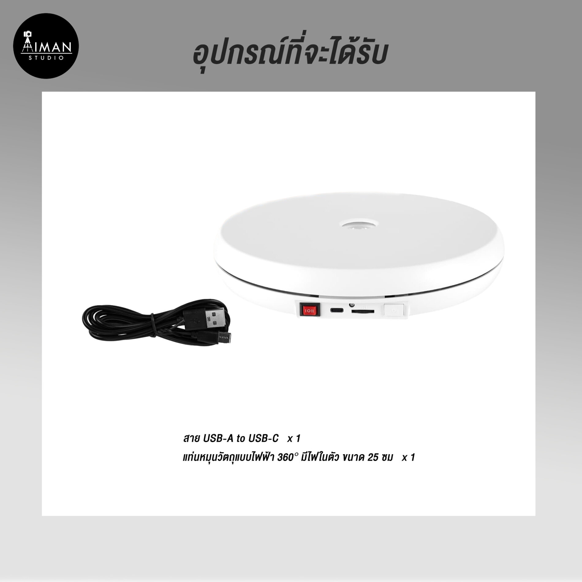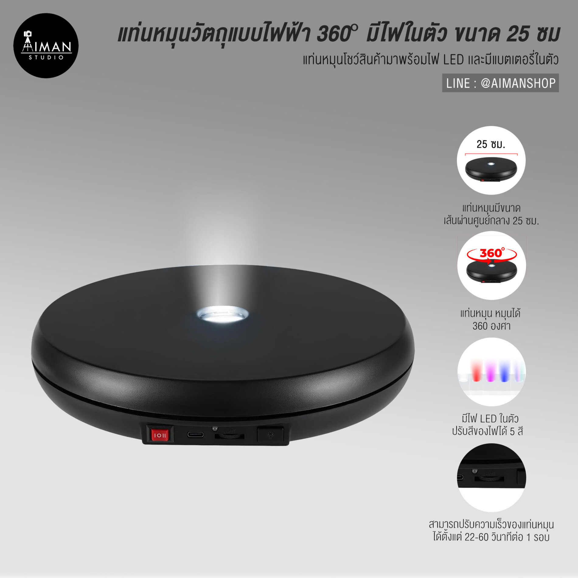 สินค้าทั้งหมด / ฉากถ่ายรูป และอุปกรณ์ / แท่นหมุนถ่ายวัตถุ / แท่นหมุนวัตถุแบบไฟฟ้า 360° มีไฟในตัว ขนาด 25 ซม